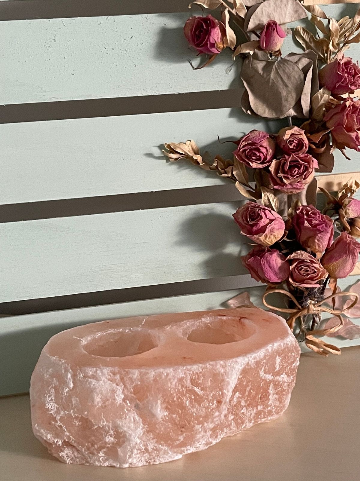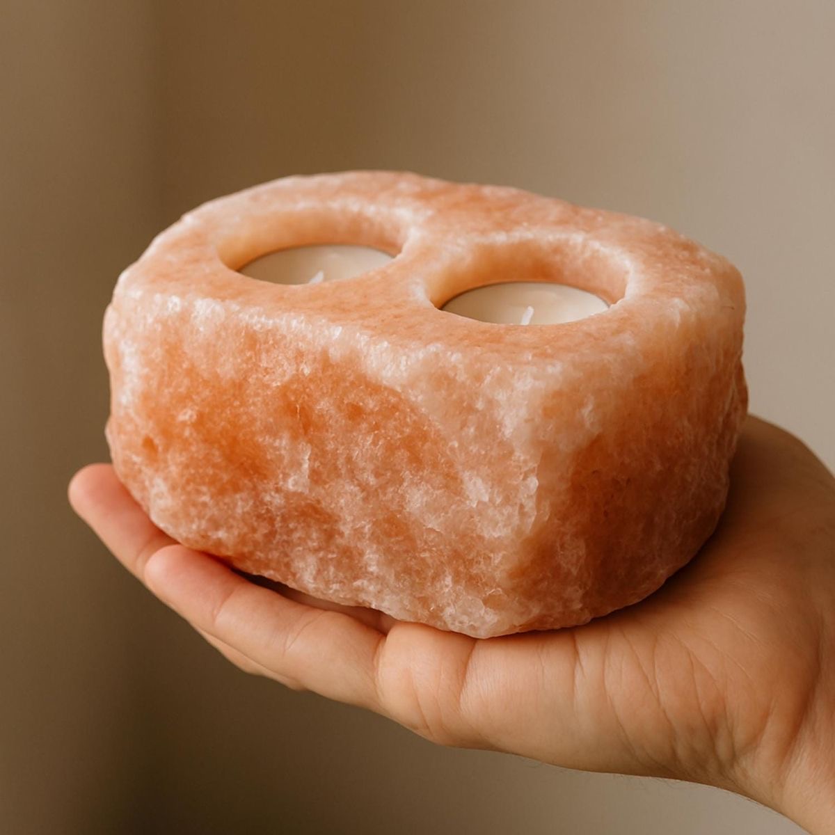 Himalayan Salt Candle Holder | 2 Hole, a fantastic way to decorate a small place While providing the Healing Benefits. It’s a beautiful candle holder