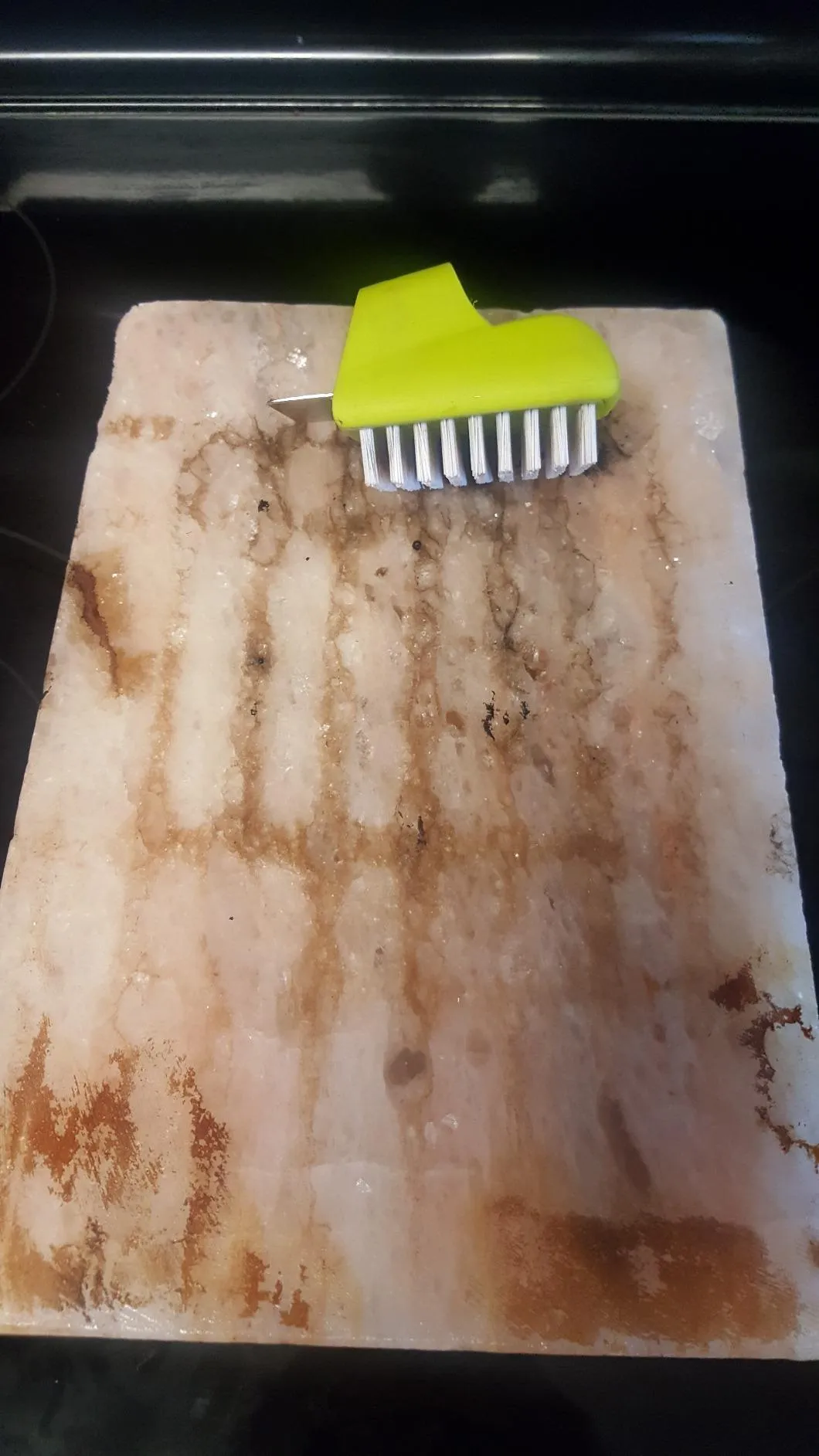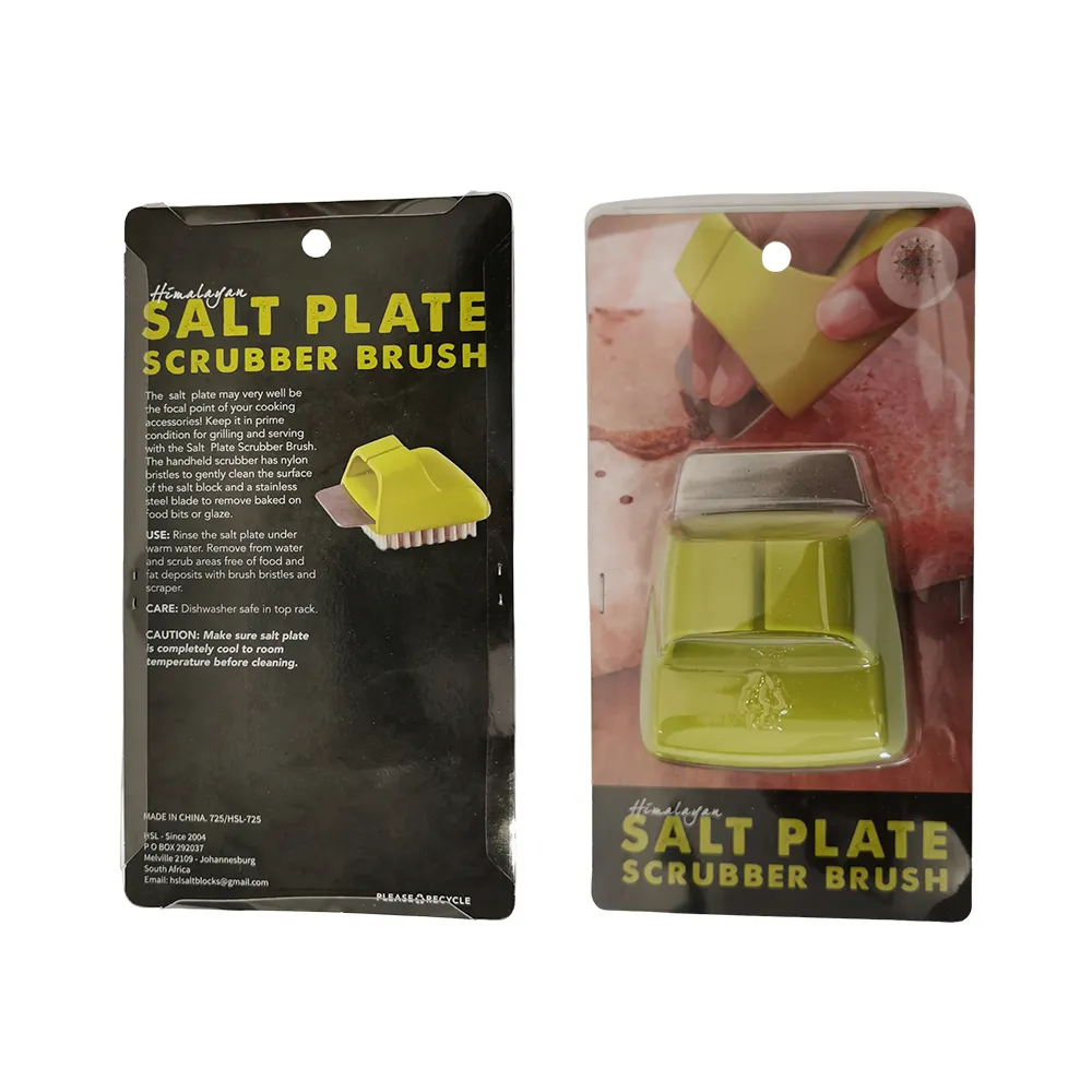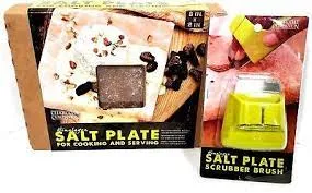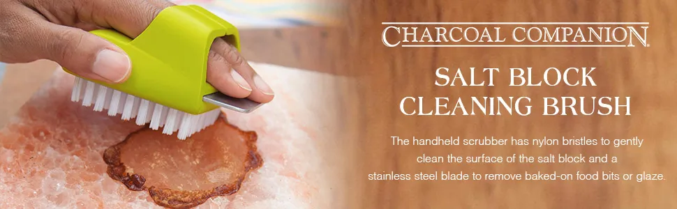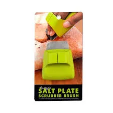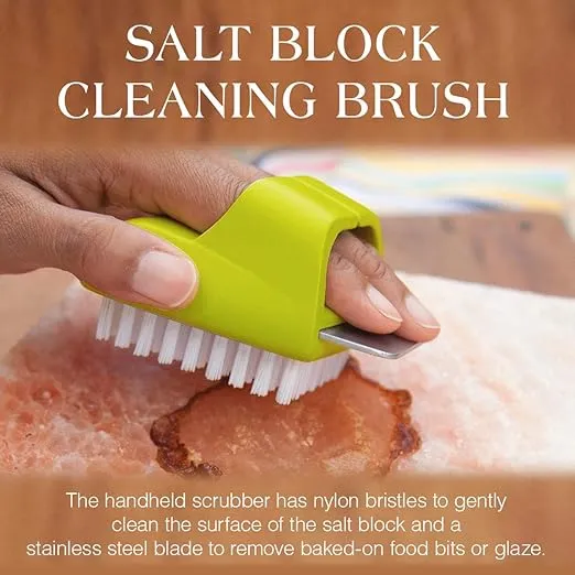 Features durable bristles that gently scrub away food residue without damaging the salt surface.