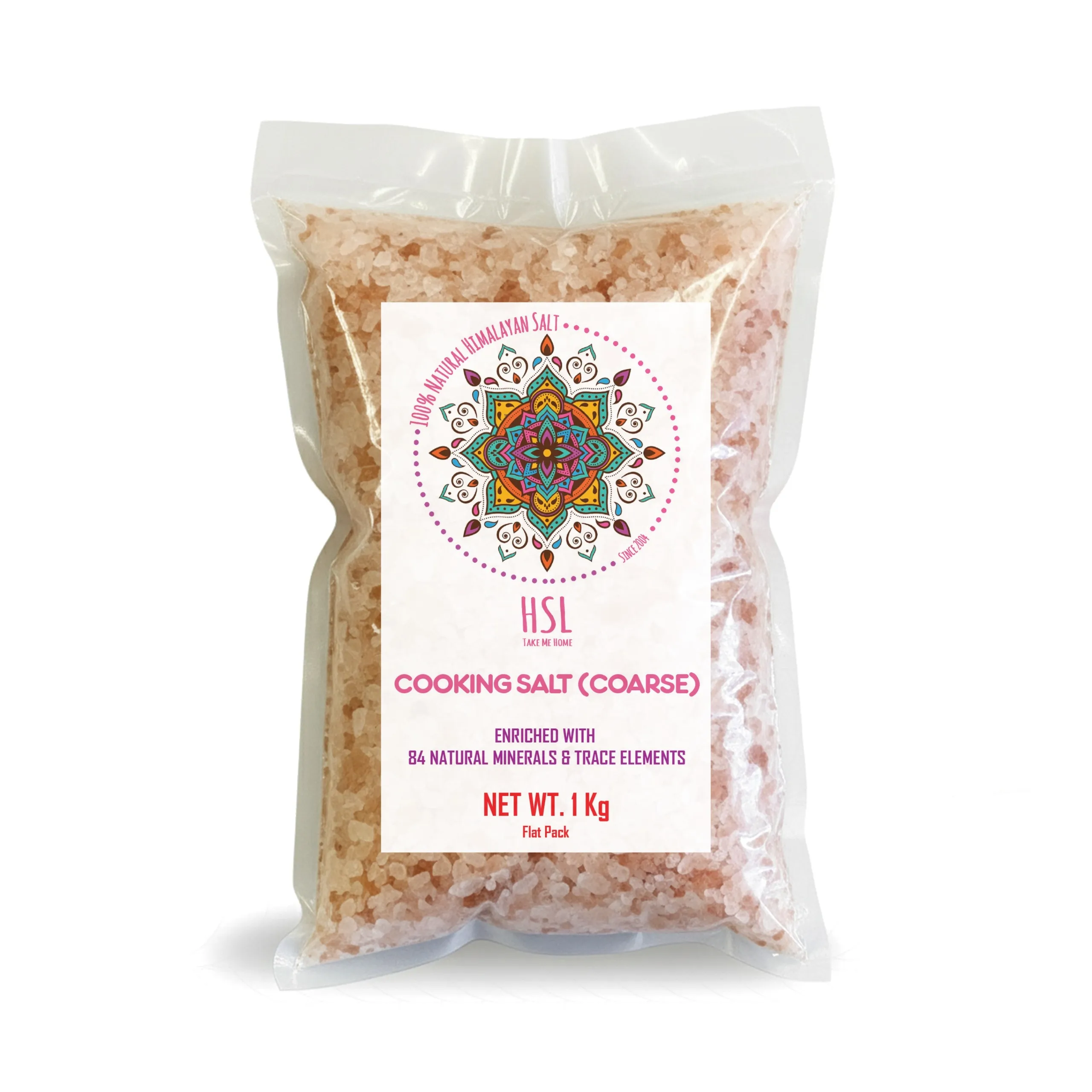 Himalayan Pink Cooking Salt | Flatpack | Coarse — Mined from the pristine foothills of the Himalayas, this coarse pink salt is naturally rich in over 80 trace minerals that promote wellness and enhance flavor. The flatpack design ensures easy storage and convenience, making it ideal for both home and professional kitchens. Perfect for grinders, cooking, grilling, or seasoning, it delivers a pure, mineral-rich taste experience with every pinch — 100% natural, unrefined, and chemical-free.